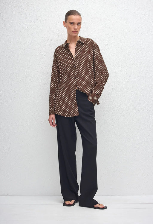 MATTEAU LONG SLEEVE SILK SHIRT POLKA DOT CHOCOLATE