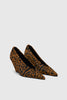 CAMILLA AND MARC Rhys pointed leopard print pump in Italian cow leather. Nubuck leather sole, angled 85mm heel. Made in Portugal.