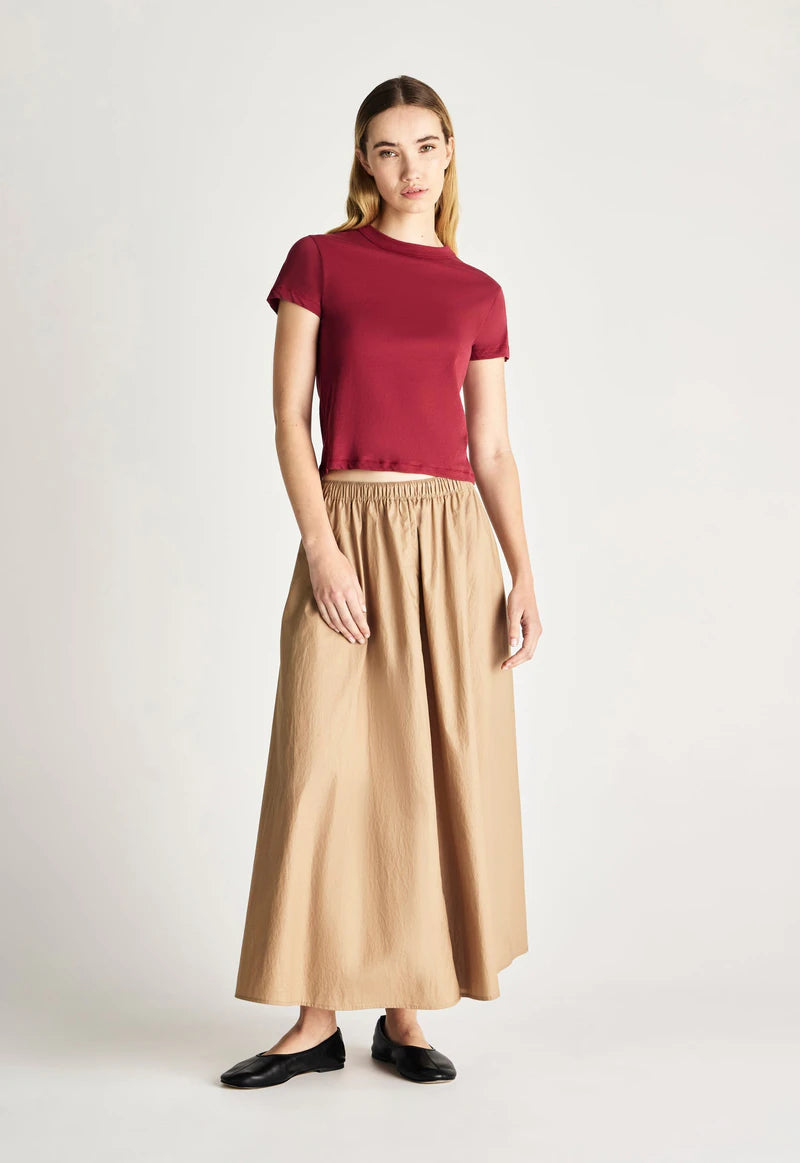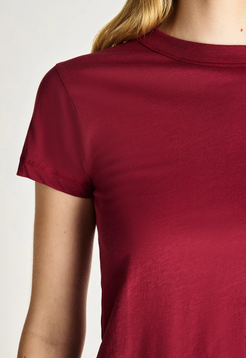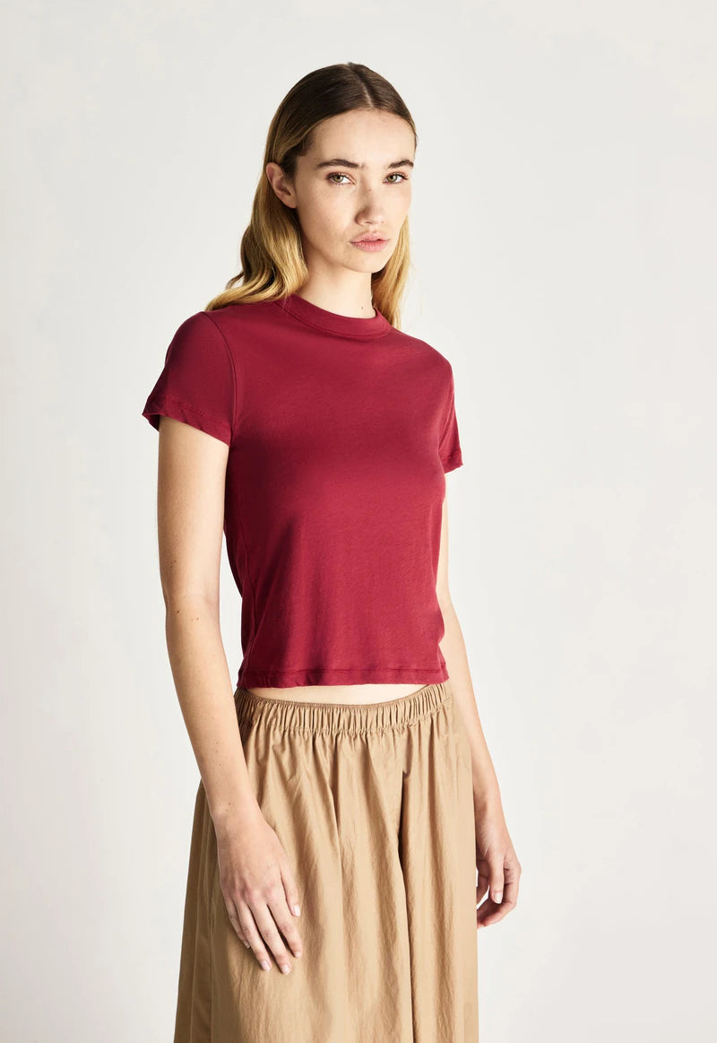The Baby Tee is our essential cotton tee your wardrobe can’t do without. Crafted from ultra-soft organic Pima cotton jersey, this petite cropped style sits just below the waist and features a classic crew neckline with capped sleeve.