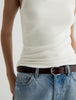 Ashley is the essential ribbed knit tank crafted from Flex 2X2 Rib knit. Balancing comfort with a polished aesthetic, this scoop neck tank is a versatile foundation piece with an incredibly soft handfeel and stretchy vertical ribbing for a form-fitting yet flexible silhouette. The ultimate anchor, this tank drapes nicely and can be styled with denim for a minimalist look or layered to add dimension to any outfit. Designed in a nearly-white wash, Powder.