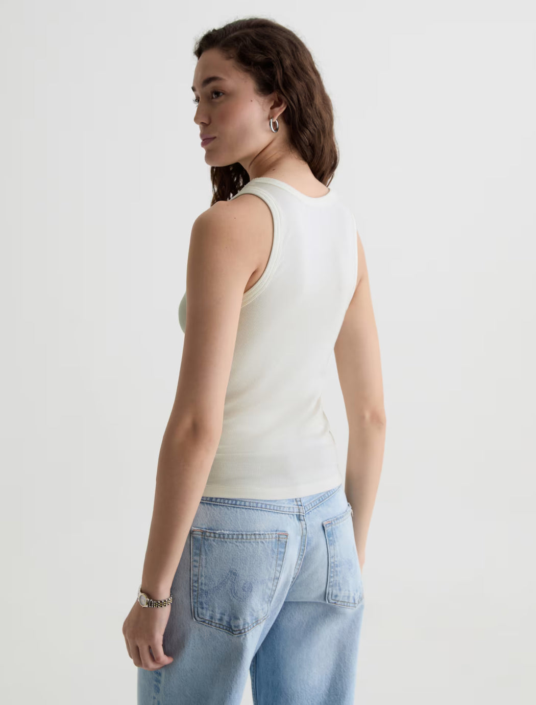AG ASHLEY TANK ESSENTIALS RIB KNIT POWDER