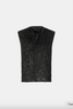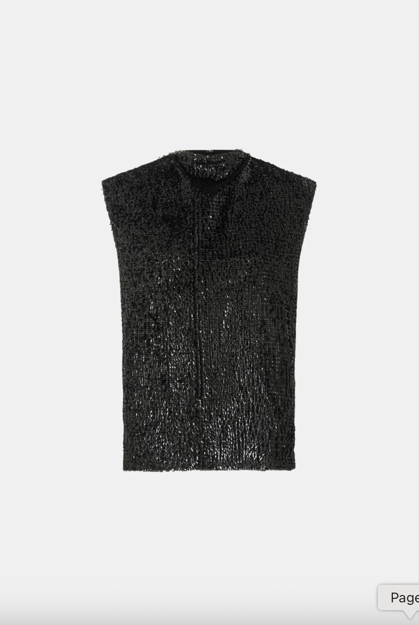 CAMILLA AND MARC Sabel black sequin sleeveless shell top with high crew neckline. Fully lined, side seam hem splits. Back neck invisible zip closure.