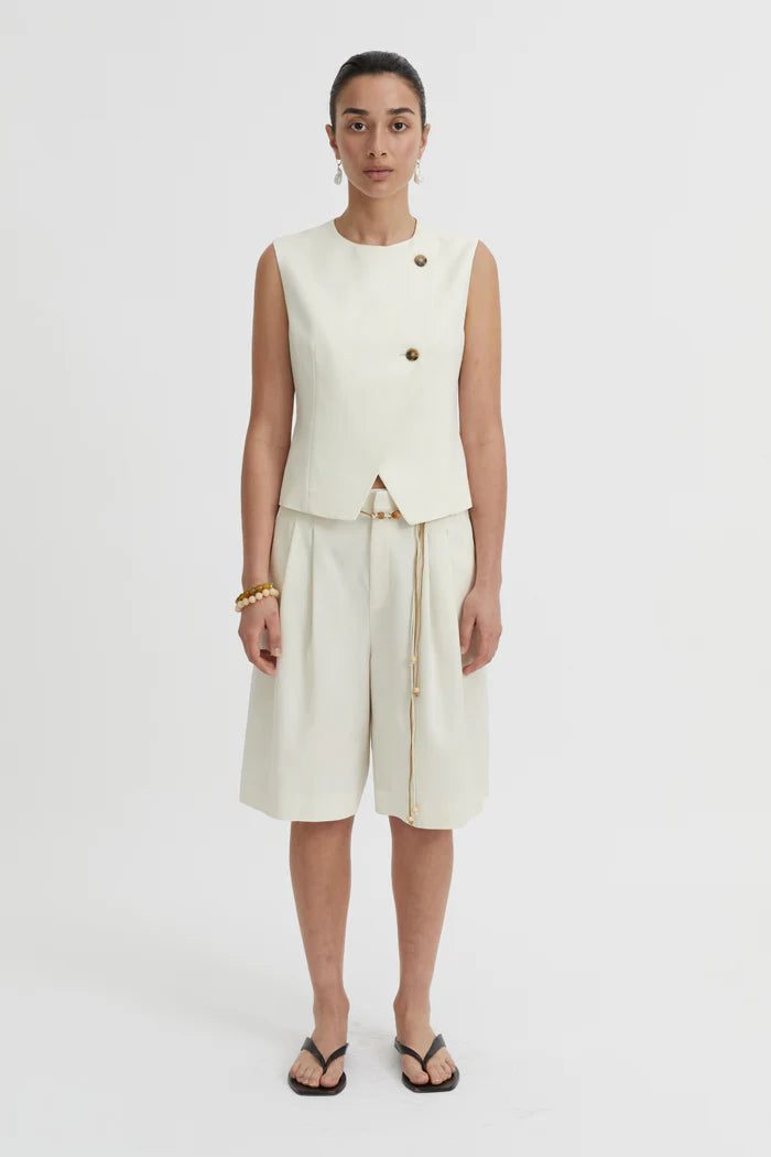 Effortless yet directional, these shorts pair seamlessly with the matching Junia Vest for a modern take on co-ord dressing, or can be styled back with simple tanks and shirts for laid-back sophistication.