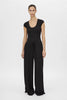 CAMILLA AND MARC Cali textured crepe mid-rise lounge pant in black. Elasticated waistband and internal drawcord for a relaxed fit. Inseam pockets.