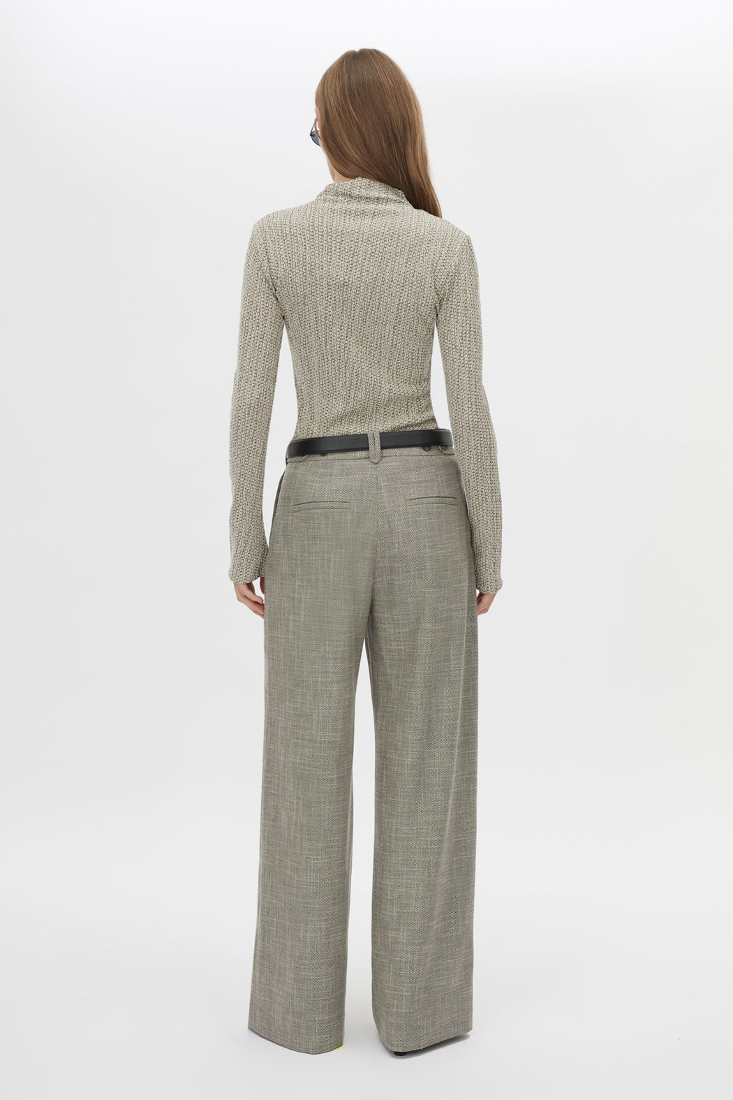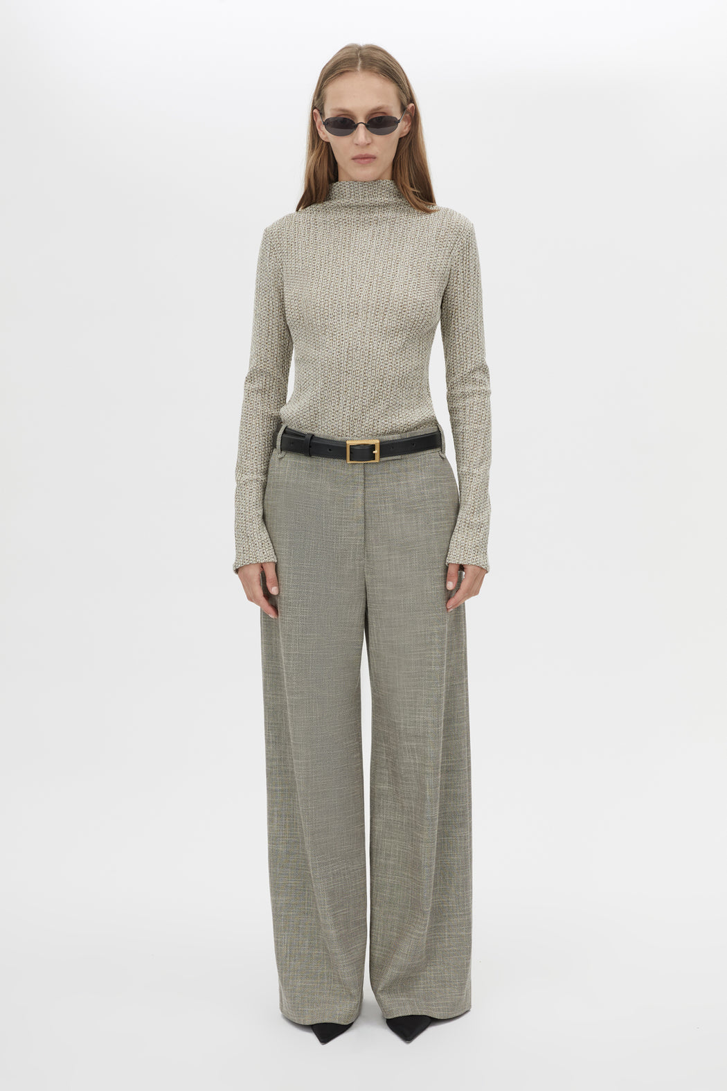 CAMILLA AND MARC Orsa textured jersey long sleeve top in beige. Funnel neck, baby locked hem.