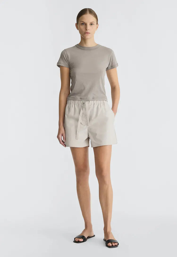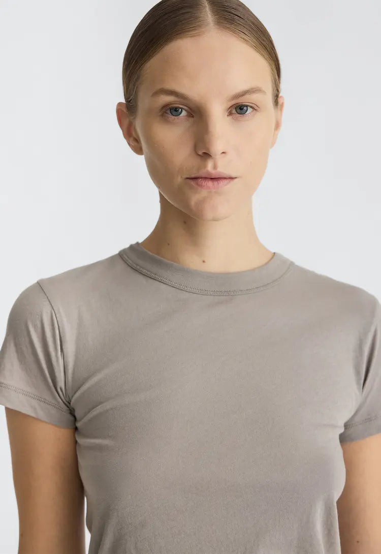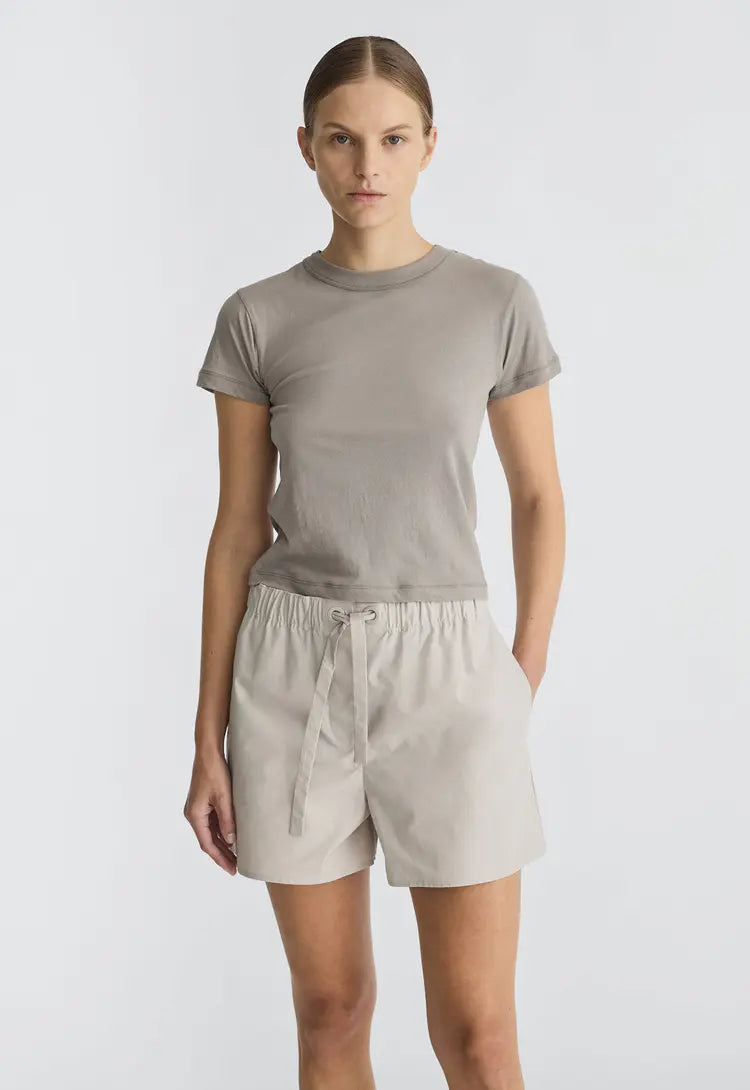 The essential cotton tee your wardrobe can’t do without. Crafted from ultra-soft organic cotton jersey, this petite cropped style sits just below the waist and features a classic crew neckline with capped sleeves. Designed for a neat, close fit - size up for a more relaxed silhouette. Pair with loose tailoring for effortless off-duty style.