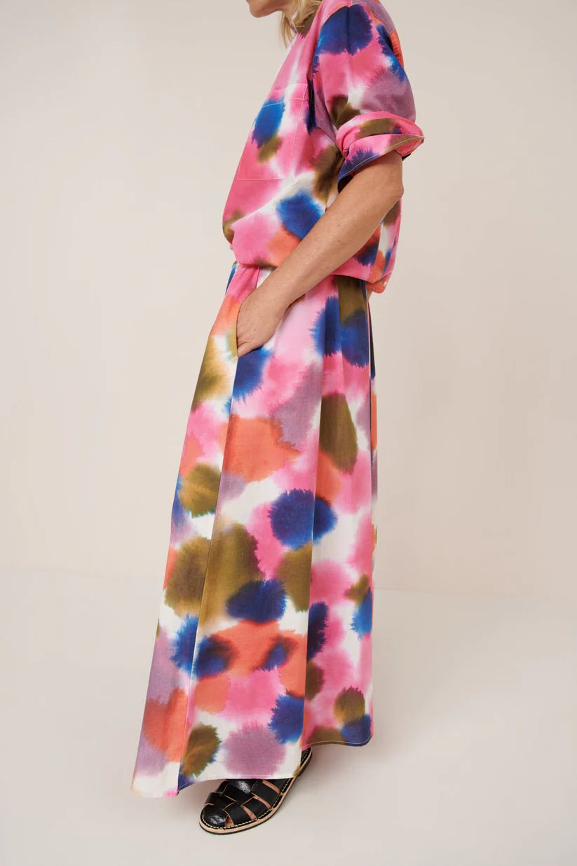 The Muse Skirt is a statement style, crafted from lightweight organic cotton voile featuring our handpainted Watercolour print. The gathered style offers beautiful movement while the relaxed fit is complemented by the elasticated high-rise waist for added comfort.